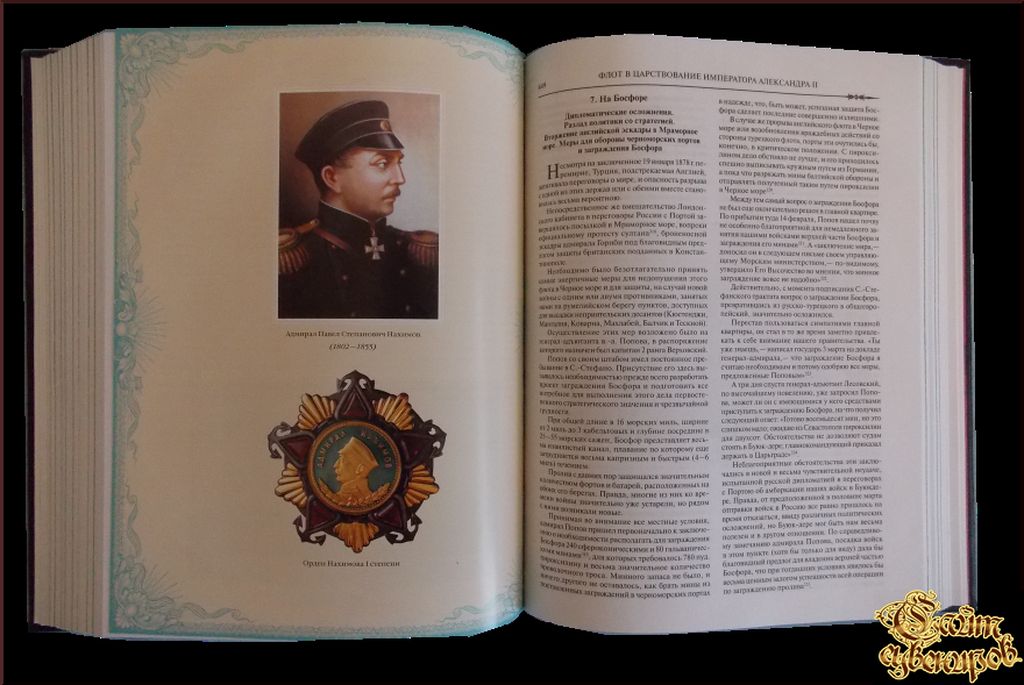 История российского флота История российского флота - это путь становления и российской государственности. Созданный Петром Великим более трехсот лет назад Военно-Морской флот стал объектом гордости всех поколений россиян. Российский флот - это упорный труд и героизм во славу Отчизны, это боевая мощ… Читать дальшеь нашей страны, гарантия безопасности и национальных интересов, но прежде всего это крепкие духом, несгибаемые и бесконечно преданные Отчизне люди. Россия по праву гордится своими флотоводцами: Ф. Ф. Ушаковым, М. П. Лазаревым, В. А. Корниловым, П. С. Нахимовым, С. О. Макаровым и многими другими. Более 500 островов и бухт за пределами нашей страны носят имена замечательных русских первопроходцев-мореходов: С. И. Дежнева, В. И. Беринга, А. И. Чирикова, Д. Я. и Х. П. Лаптевых, Ф. П. Врангеля, О. Ю. Шмидта, С. И. Челюскина. В книге отражены главные вехи славной победами истории флота Российской империи: воссозданы и проиллюстрированы важнейшие боевые операции, подробно описаны детали морской тактики и стратегии, беспристрастно проанализированы уроки поражений,- показаны эпохи великих завоеваний нашего государства на море. Текст книги был подготовлен боевыми офицерами Морской Николаевской академии Генерального штаба, богато проиллюстрирован документальным материалом Страниц: 704 (Офсет) Оформление Масса: 1726 г Размеры: 263x206x45 мм. Кожаный переплет, ручная работа.