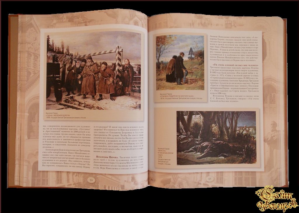 Павел Третьяков и его знаменитая коллекция Имя Павла Третьякова и собранная им картинная галерея стали одним из главных символов русской культуры. Итогом более чем сорокалетней коллекционерской деятельности московского купца и благотворителя стало создание первого общедоступного художественного музея в России: 31 ав… Читать дальшегуста 1892 года Павел Михайлович передал свою коллекцию вместе с домом в дар Москве - так возникла знаменитая во всем мире Третьяковская галерея. Альбом состоит из разделов, посвященных жизни и семье Павла Третьякова, его общению с видными деятелями русской культуры и истории его собрания. В большом уникальном разделе представлены шедевры коллекции и рассказывается об истории их приобретения, взаимоотношениях Павла Михайловича с художниками. Автор книги приводит много интересных, редко публикуемых биографических фактов и интересных сведений об известных картинах. Страниц: 448 (Мелованная) Масса: 2108 г Размеры: 310x245x35 мм. Кожаный переплет. Ручная работа. Тиснение золотой фольгой.